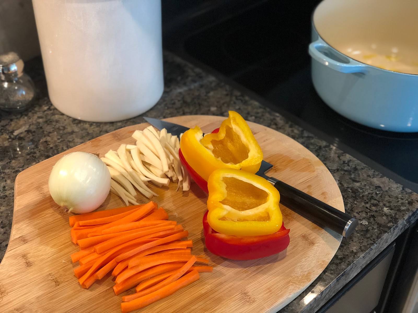 Cook on medium/low heat until the veggies are soft, but not super soft, because they will get softer while boiling in the soup. You don't want them to be mushy. Don't start on high heat either because if they burn, you will have little black burnt bits in your soup.
